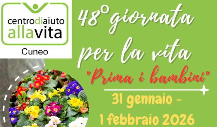Sabato 31 gennaio e domenica 1 febbraio torna, per la 48a edizione, la “Giornata per la Vita” indetta dal Centro Aiuto alla Vita, anche quest’anno potremo trovare le primule presso le Gallerie Grande Cuneo a Tetto Garetto di Cuneo oltre che davanti alle chiese.