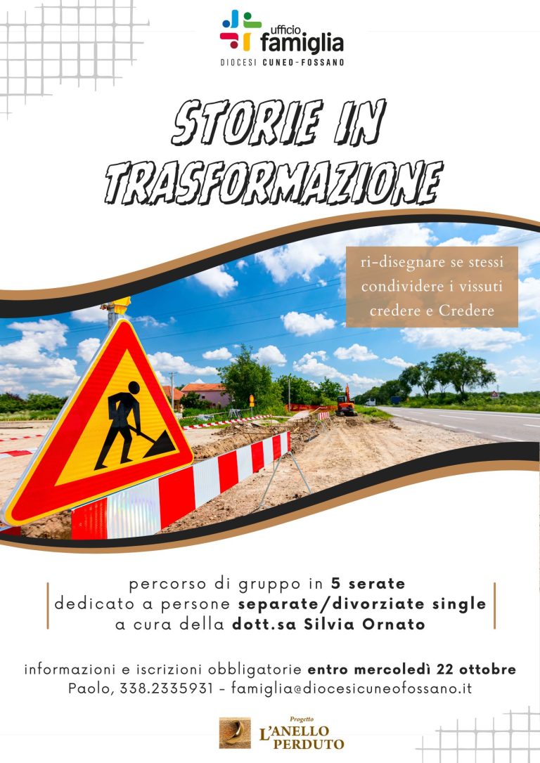 Pensare e vivere il cambiamento dopo la separazione dal coniuge spaventa e disorienta, perché sono minacciate la sicurezza e la stabilità personali. La grande questione in gioco, di fatto, è l’identità: chi ero, chi sono e chi sarò? Quale immagine hanno gli altri di me? Chi sono adesso senza quella persona che fino a poco fa mi era accanto e con cui ho costruito il presente ed immaginato il futuro? Come cambia la storia, quando i personaggi si trasformano, il lieto fine non si realizza come idealmente era stato tracciato e il “noi” cede nuovamente il passo ad un “io” da ridefinire? Come transitare dalla sofferenza di una storia finita alla vitalità che scaturisce dalla certezza che “la storia” continua? Queste domande non trovano risposta immediata, ma si fanno sentire e ci interpellano profondamente. Nel percorso laboratoriale, con l’ausilio di tecniche attive e momenti di confronto, si condivideranno emozioni, reazioni, fatiche e prospettive, nell’ottica costruttiva di ritrovare radici e traiettorie di significato, per continuare a scrivere la storia di ognuno.